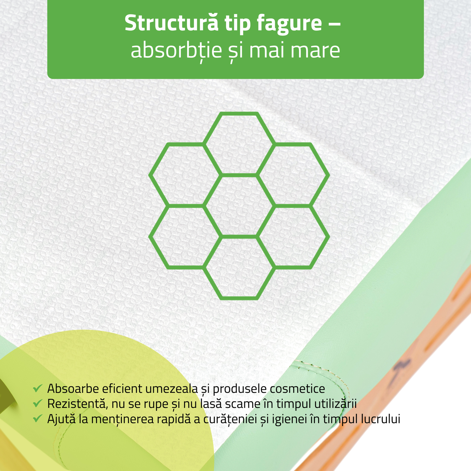 • structură inovatoare pentru o absorbție optimă a umezelii și produselor cosmetice,