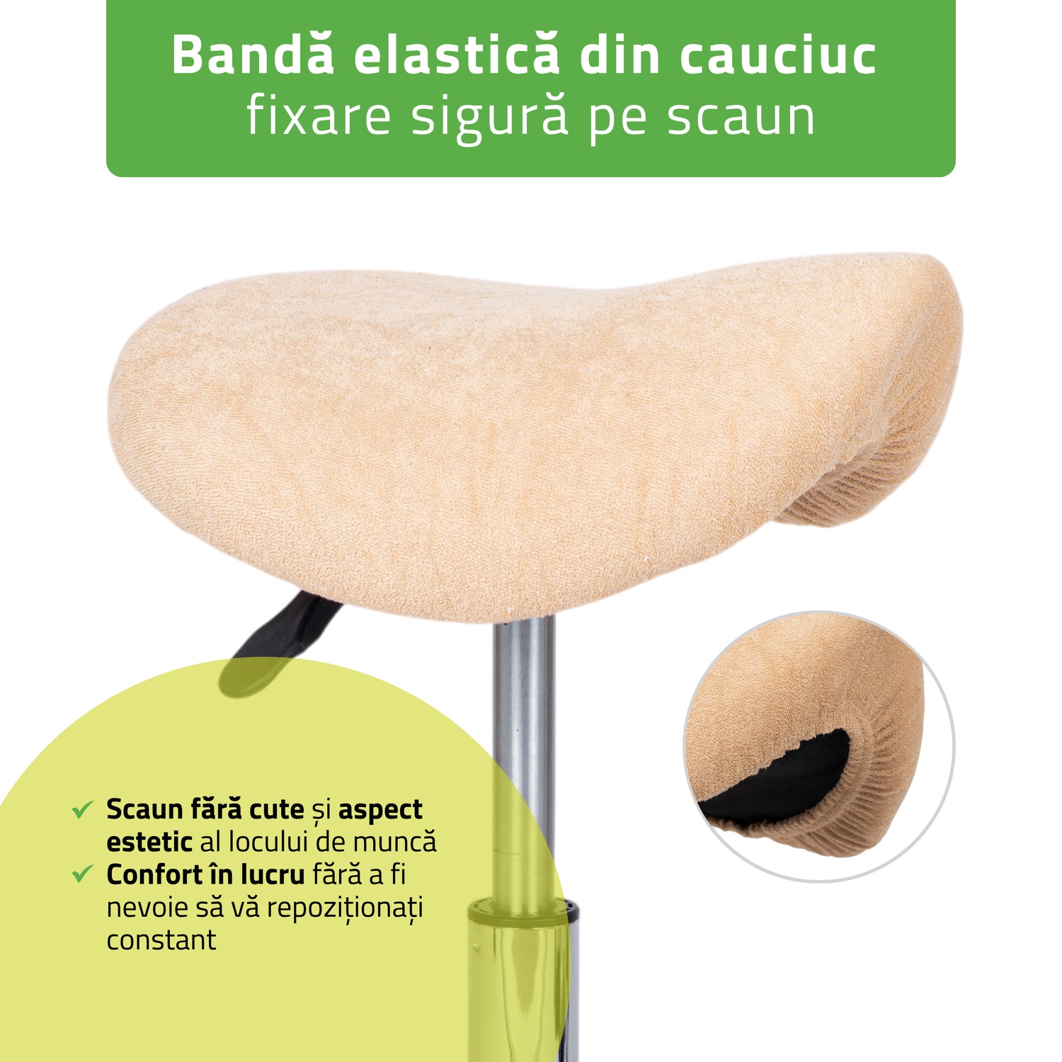 - Aderență stabilă la scaun.