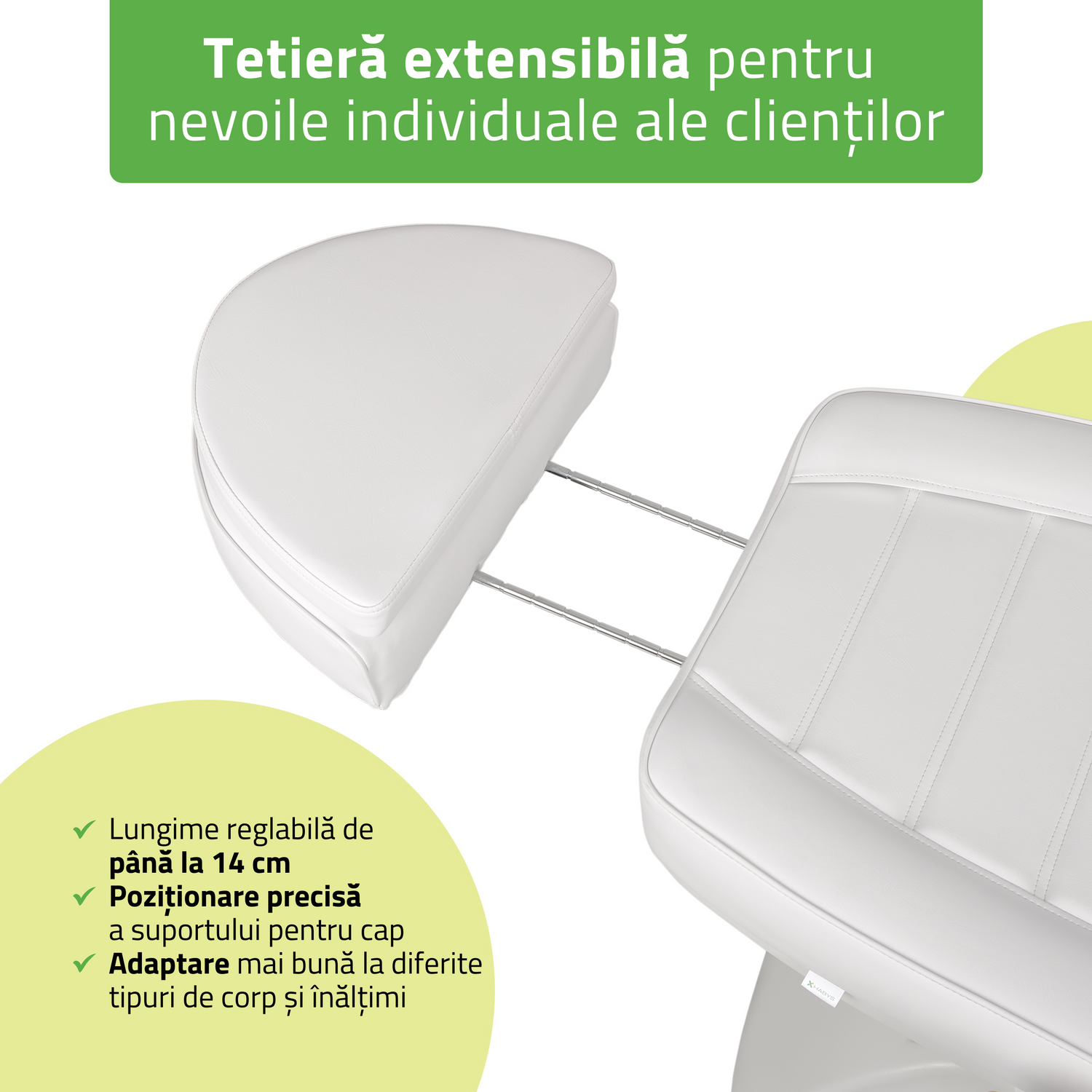 - Tetieră extensibilă: ajustabilă până la 14 cm pentru adaptare la nevoile fiecărui client.