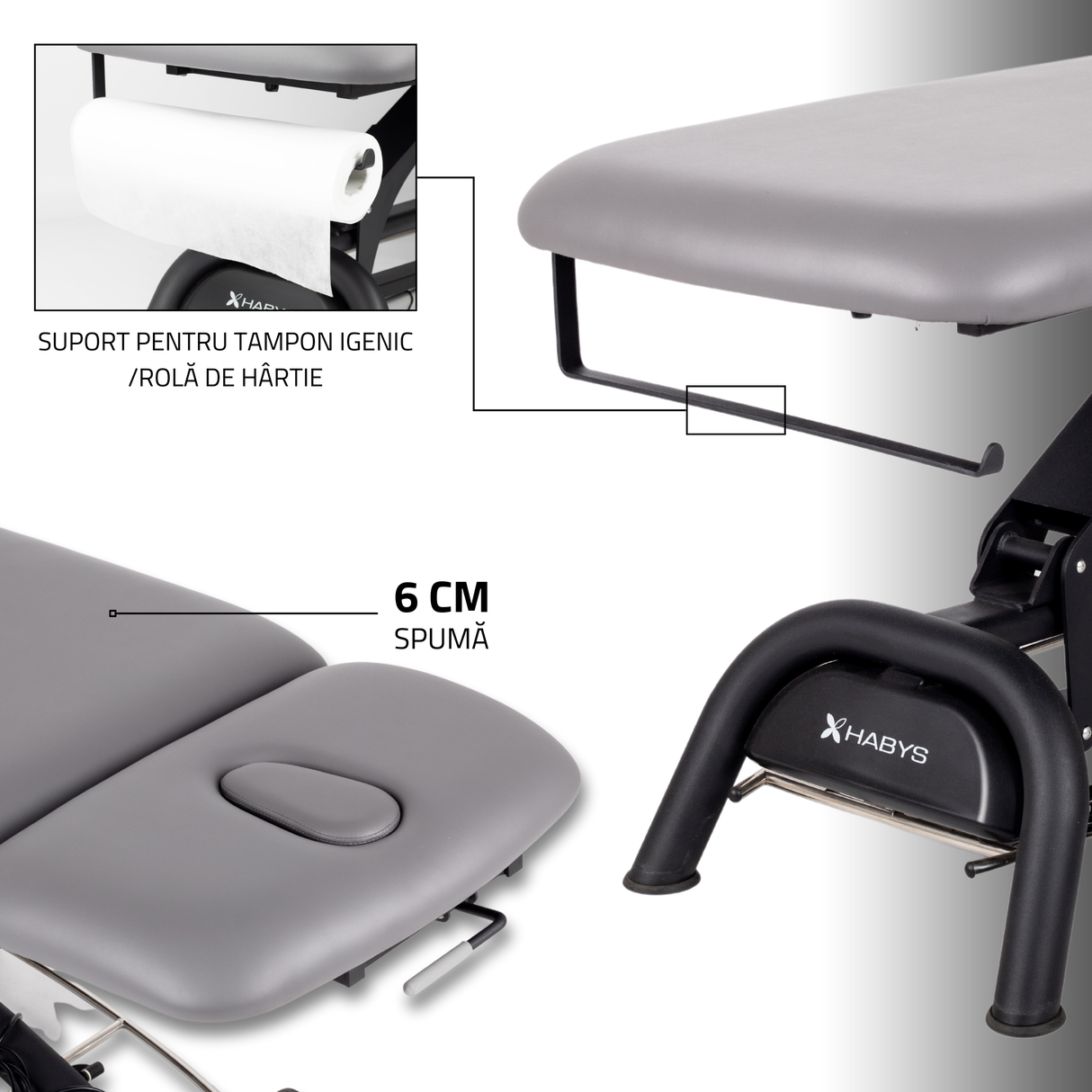 Masa este echipată cu un suport practic pentru role de protecție de unică folosință.
