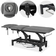 Suprafață în 5 segmente: Dimensiuni 192 × 68 cm, cu tetieră și brațe reglabile pentru poziționarea precisă a pacientului în terapia manuală și masaj.